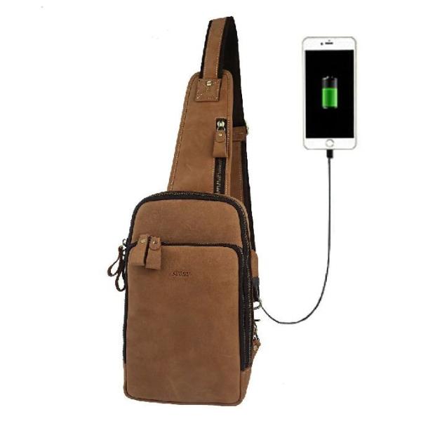 Multipurpose Genuine Leather Crossbody Sports Bag With USB Charging Port Images |